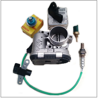 Control, reparación o reemplazo, según corresponda, de cuerpo de aceleración, bomba de combustible, regulador de presión, actuador paso a paso y bobinas de encendido. Como asi también sensores MAP, MAF, PMS o Sonda Lambda.